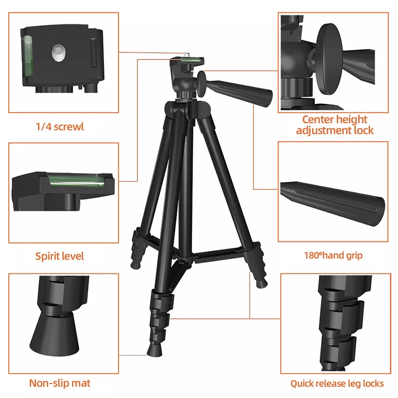 🔹 Adjustable Tripod Stand – Sturdy & extendable for the best angles